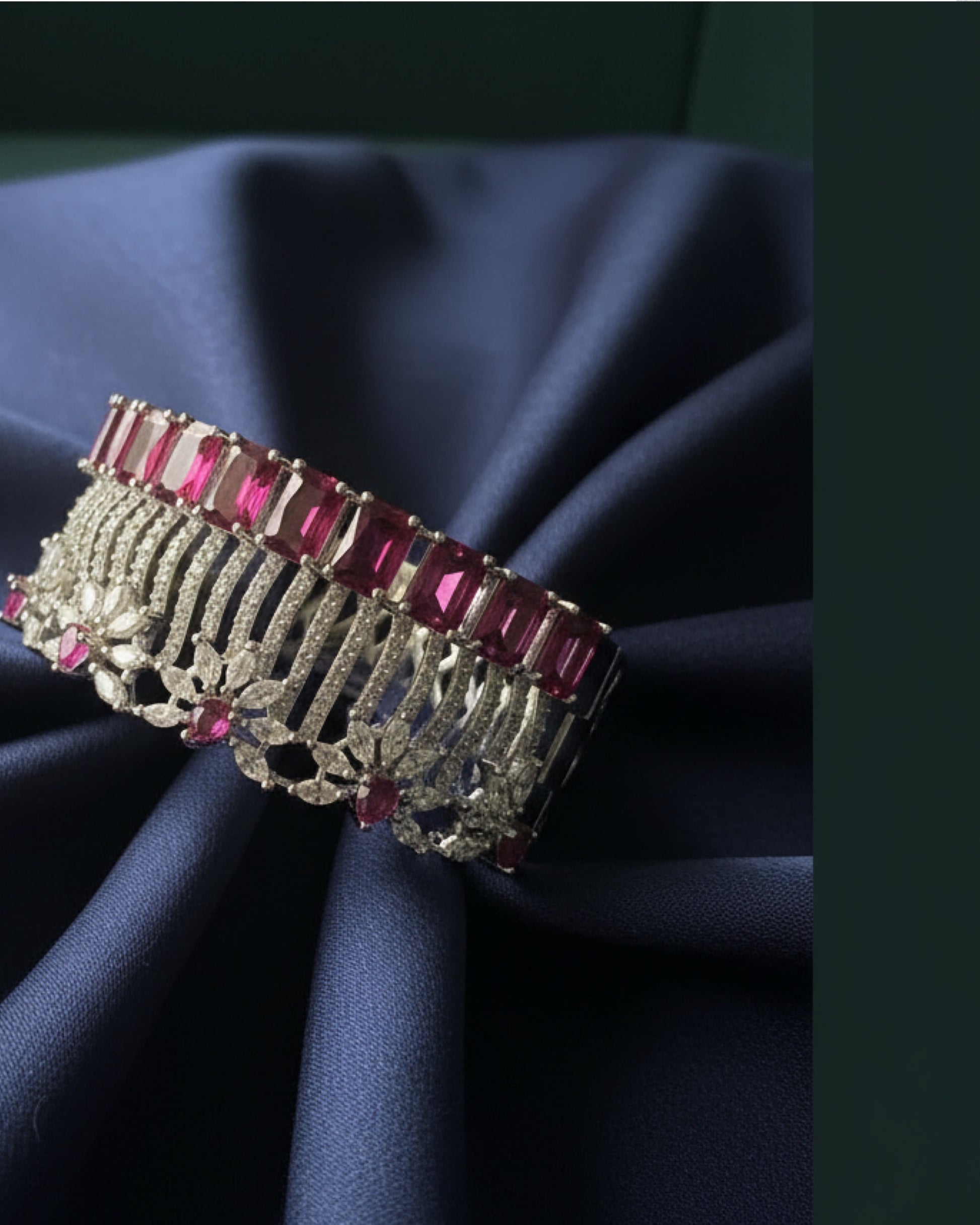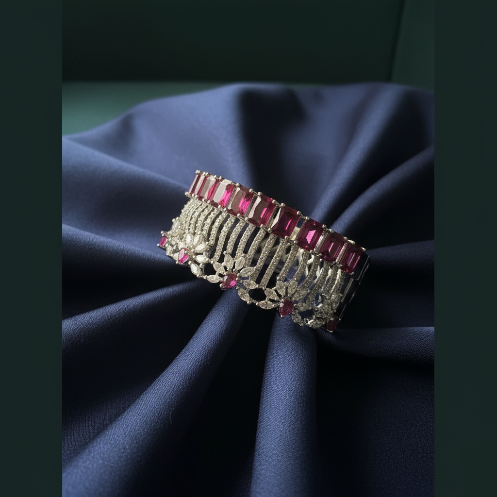 Designed for those who appreciate grandeur, this bracelet is ideal for bridal wear, festive celebrations, formal evenings, and high-end occasions. Its architectural craftsmanship ensures a secure yet comfortable fit while delivering a rich, high-jewelry look.